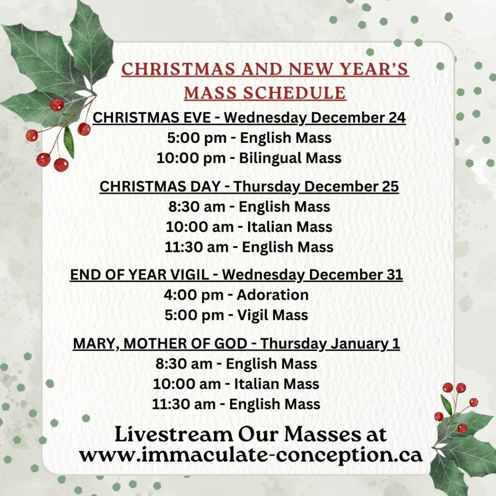Our parish bulletin contains information on weekly mass times, any events taking place at Immaculate Conception Community church and within our community that may be of interest to you!