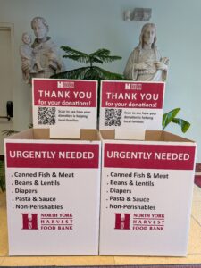 Any non-perishable items will be accepted. They also welcome new personal hygiene products. Please check expiration dates before donating food as any expired items cannot be accepted. North York Harvest Food Bank provides emergency food to 30,000 people in our community—1 in 4 of them children.